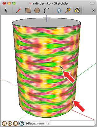 2 Click the Select tool in the toolbar and click the vertical side of the cylinder to select it.